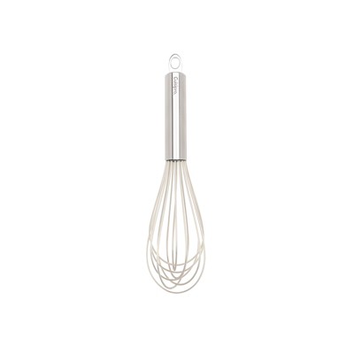 The Balloon Whisk is constructed of durable, non reactive 18/8 stainless steel for long lasting use. This lightweight medium sized whisk is a necessity in the kitchen. Use when preparing marinades and sauces, putting together batters for baking, and more. The smaller size makes this whisk easy to store while the durable steel wire is sturdy and allows you to whisk together liquids at varied consistencies. Ergonomic handle provides a comfortable grip during extended use. Dishwasher safe stainless steel