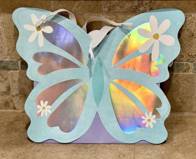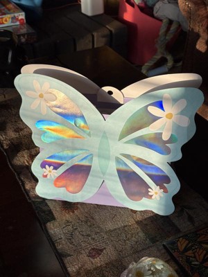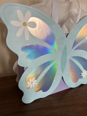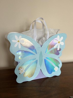 This butterfly gift bag is beautiful! It is sturdy, has great handles that are long enough, and has a really pretty iridescent design. It is unique and will make a great gift bag for many different occasions