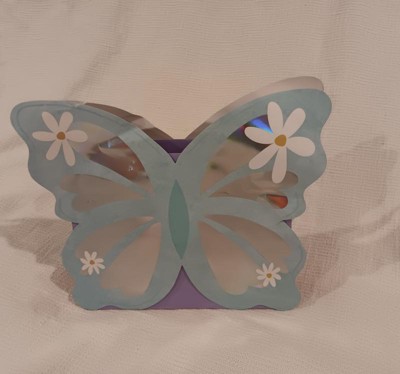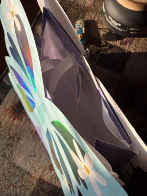 This butterfly bag is really cute and is double sided with the full design. It has a matte mirrored finish that makes the butterfly wings pop. The daisies are a fun addition, giving the bag a whimsical feel. The bag feels durable and looks like it will have no issues holding up to heavier gifts.