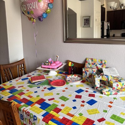 A: The wrapping paper features fun, playful block prints for a charming touch.