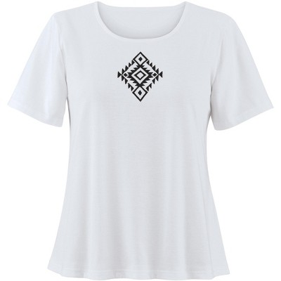 This is not your fathers t shirt. The feminine 1/2 inch neckline and capped sleeves gives a classic tee a more fashionable look. The quality pre shrunk fabric and durable double needle stitching allows this shirt to look and feel great wash after wash. Whether you are looking for a great tee to pair with your pj pants or a blank canvas to add your own style this cotton tee is an ideal option. Made of 100% Cotton