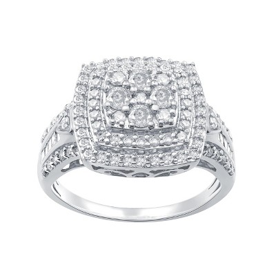 GILDED 1/2 CTTW Natural Diamond Anniversary Ring in Sterling Silver with Miracle Plating, Size 7