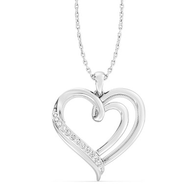 - This womens heart necklace featuring inter-locked double heart is crafted in sterling silver. This small 925 sterling silver heart necklace boasts 1/4 carat total weight of lab grown diamonds(F-G color and SI1-SI2 clarity).