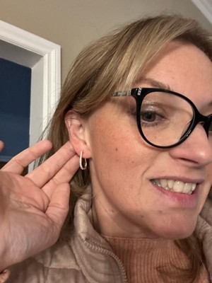 [This review was collected as part of a promotion.] I love these hoop earrings!! They are so pretty and glisten in the light. They are very lightweight and easy to put on and remove! Love how they are not too big/small!