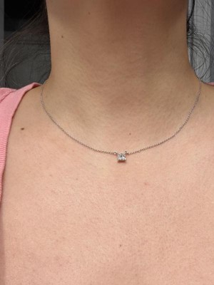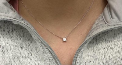 [This review was collected as part of a promotion.] I received the Gilded 1/2 CTTW Lab Geown Diamond Pendant with an 18” chain. It’s a very pretty necklace. I would have preferred a longer chain but it’s not a bad length. The chain does seem very delicate. I went with the princess cut since it matches my engagement ring.