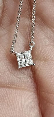[This review was collected as part of a promotion.] This is such a beautiful petite little necklace. It’s amazing how such a tiny little square diamond can really pull everything together. I feel like 1 million bucks. It is very elegant and doesn’t turn my neck green.