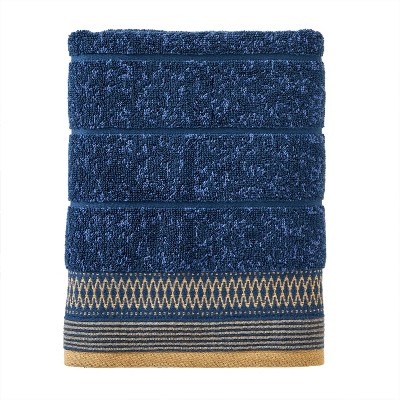 Regal and impressive in design, the Gilded Pineapple Bath Towel by SKL Home adds impressive color and design to the bath. Majestic navy blue is decorated with bright gold embroidered pineapples for an eye-catching bath towel. The Gilded Pineapple towel will be a focal point for any bathroom in the home.