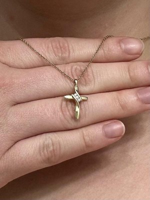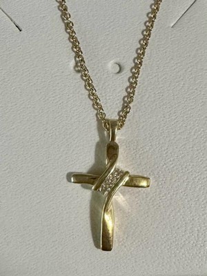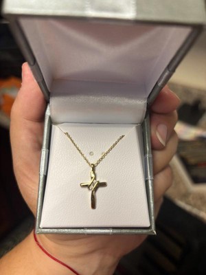 - TIMELESS DESIGN: Crafted in gold plated silver, this small cross pendant measures 0.83" in length and 0.48" in width. Featuring three natural round-cut diamonds, it symbolizes love, hope, and faith, making it a meaningful accessory for everyday wear