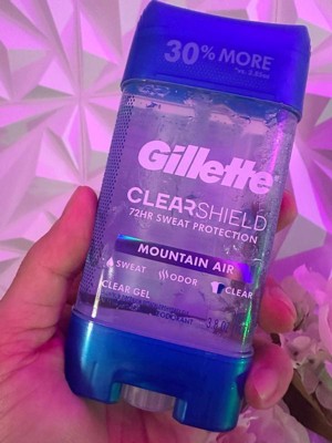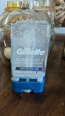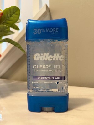 [This review was collected as part of a promotion.] I love this Gillette Clear Shield deodorant. The Mountain Air scent is very clean and nice. It controls sweat and odor all day long and goes on clean without leaving any residue. It is lightweight and dries nicely despite being a gel.