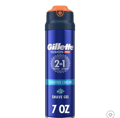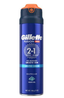 Experience an incredibly close and comfortable shave with Gillette FusionPro Sensitive Cooling Shave Gel. This 2in1 Protect + Hydrate Shave Gel helps give you a cooling feeling and is made with a touch of Eucalyptus and Aloe Vera ingredients. It is also suitable for sensitive skin. To use, first wet your face and then apply a thick, even amount of shaving gel over the area. Watch the Gillette FusionPro Sensitive Shave Gel transform into a sensitive cooling lather. This shave gel helps glide your Fusion5ProGlide razor for incredibly smooth skin that you expect from Gillette. Gillette FusionPro Sensitive Shave Gel also minimizes tugs, pulls, and friction. Spend less time and energy on grooming and get more overall comfort in your shave. The shaving gel is specifically formulated for a cooling effect during shaving. Gillette FusionPro Shaving Gel helps protects your skin from shaving irritation, helping to reduce cuts, redness, burning, stinging, and tightness with a formula that leaves your skin feeling hydrated. To use, simply apply a thick, even amount of shave gel over the area, shave, and rinse off. Show the world your best face with the Gillette FusionPro Sensitive Shave Gel for men, made by the World's Number One Shave Gel & Foam brand. For great results, use Gillette FusionPro Shaving Gel with a Gillette Fusion5ProGlide razor for a shave you barely feel* (*vs. no shave gel).