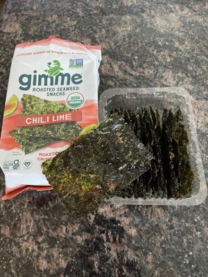 [This review was collected as part of a promotion.] Received Gimme Seaweed Organic Premium Roasted Seaweed Snack, Chili Lime for testing and reviewing purposes. The chili lime flavor was excellent. But I'm was not to fond of the paper thin seaweed. It tasted a little like paper literally. But maybe it was because it was try of this type of product. I am going to try out another one and see if I feel the same way. I guess its a acquired taste.