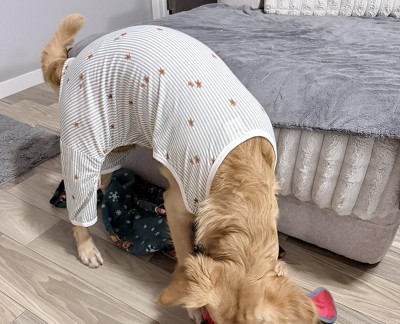 Add a sweet touch to your furry friend's wardrobe with these Gingerbread Pet Pajamas from Wondershop™. Designed for cats and dogs alike, these cozy pullover pajamas combine comfort and festive charm. The cotton-spandex fabric provides a snug yet flexible fit, making it easy for your pet to move around. Featuring an allover gingerbread print, these pajamas keep your pet warm while adding cheerful holiday style to their look.