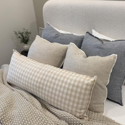A: Hi Guest - Thank you for reaching out. We appreciate your interest in Gingham OS Oblong Dec Pillow. Yes, you can machine wash the Threshold Gingham OS Oblong Dec Pillow in cold water on a gentle cycle, but you should always check the care label for specific instructions before washing, as it is the most reliable way to determine cleaning requirements. After washing, it is recommended to tumble dry on a low-heat setting to help the pillow maintain its shape and prevent damage to the fibers.Happy Shopping!! - Emma