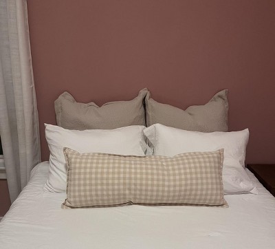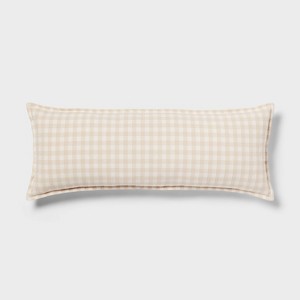 Gingham OS Oblong Dec Pillow Khaki/Ivory - Threshold™: Cotton Rectangle Lumbar Support, Indoor Use