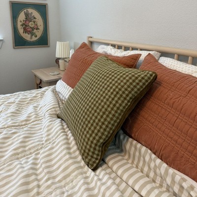 Upgrade the look of your space with this Gingham + Velvet Reverse Pillow from Threshold designed with Studio McGee. This 20-inch square pillow with self-cord edging showcases a classic gingham-pattern upper in deep red and brown hues, complemented by a solid velvet reverse in brown for an elegant look. Featuring a soft-fabric exterior and a well-filled interior, this throw pillow adds the right amount of comfort and style to your sofa, couch, bench or bed.