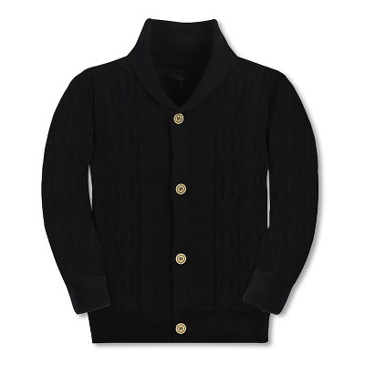 Gioberti Boy's Full Zip Knitted Cardigan Sweater with Hoody and Faux Shearling Lining, Black, Size 6