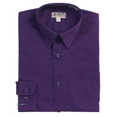 Gioberti Boy's Long Sleeve Dress Shirt and Plaid Tie Set, Purple B, Size 6