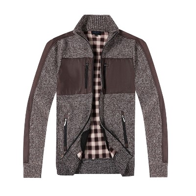 • Full Zipper Checkered Design Knitted Cardigan Sweater with Soft Brushed Flannel Lining