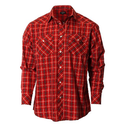 Gioberti Men's Long Sleeve Plaid Shirt, Red / Black / Orange, Small