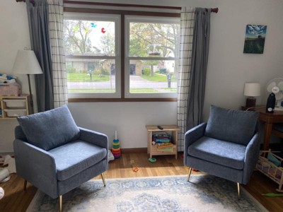 I got two chairs, and they look so good together. The color is lovely and the fabric is nice and soft. It’s a nice combo of stylish and comfortable. It’s a perfect place for me to enjoy my morning coffee while my kids play.
