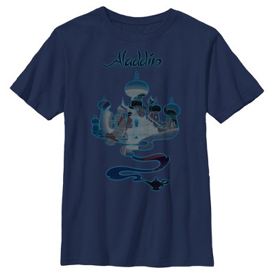 • Strut your stuff with this stylish new girls' t-shirt that is perfect for every occasion! Featuring an outlined graphic of Aladdin and Jasmine on the magic carpet, with the moon, stars, and the city of Agrabah peeking out in the background.