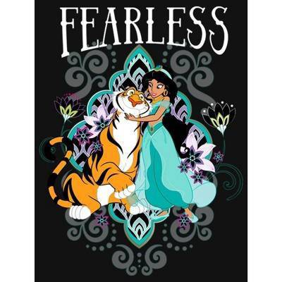 Jasmine is sneaking out of the palace and she wants to look her best when she hits the streets of Agrabah, so she is grabbing the Disney Aladdin Fearless Jasmin Girls' T-Shirt! This tee features Jasmine with her trusty friend Rajah with an ornate pattern in the background. All of your favorite characters, like Jasmine, are here to help add some magic to your closet with fun Aladdin designs, perfect for Disney fans everywhere!