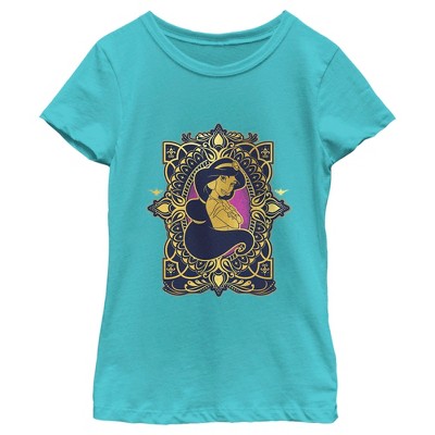 Girl's Aladdin Jasmin Birthday Princess T-Shirt - Tahiti Blue - X Large