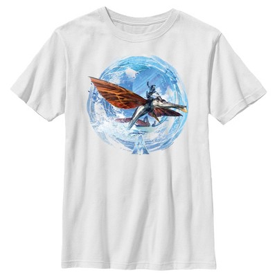 • Strut your stuff with this stylish new Girls' T-Shirt that is perfect for every occasion! Featuring Jake Sully riding a Tulkun with a wave hovering over him.