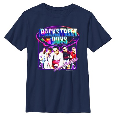 Sing your heart out and rock your body right to the rhythm of the iconic vocal boy group Backstreet Boys with this new officially licensed apparel of the talented Nick, AJ, Kevin, Howie, and Brian! This Girls' Backstreet Boys Larger Than Life Graphic T-Shirt features a cool, retro-style graphic of the boy band with a neon purple outline, the band name printed above in colorful, shiny lettering, and the song name: "Larger Than Life" printed across the front. Take advantage of these awesome designs because they're everything ya need!