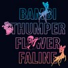 • Strut your stuff with this stylish new girls' t-shirt that is perfect for heading out into the forest! Featuring Bambi and Faline the deer, Thumper the rabbit, and Flower the skunk with a stack of their names in colorful big bright neon letters in the background.