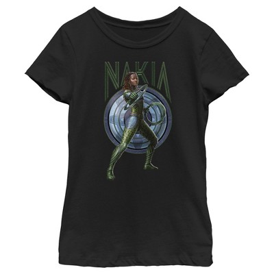 • Strut your stuff with this stylish new everyday Girls' T-Shirt that is perfect for every occasion! Featuring Nakia standing tall while showing off her ring blades and the Black Panther: Wakanda Forever logo below.