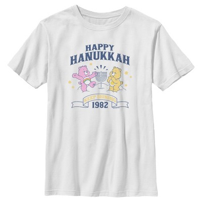 Welcome to the wonderful and adorable world of Care Bears! From cuddly stuffed bears to TV shows and movies, the Care Bears have it all! Grab an officially licensed Care Bears design for the whole family this Hanukkah and spread a little joy! This Girls' Funshine Bear Happy Hanukkah Graphic T-Shirt reads: "Happy Holidays" alongside the joyful Funshine Bear playing with a dreidel. Add extra sparkle to your Hanukkah celebration with this new Care Bear apparel!