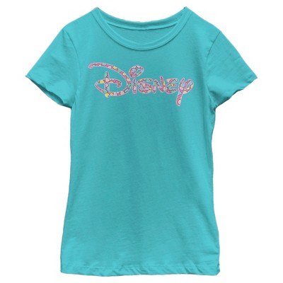 Get in the Valentine's Day mood with this officially licensed Girls' Tahiti Blue Disney Candy Logo Tee! Featuring the Disney logo with candy Valentine's Day hearts inside the letters, you are sure to attract many Disney fans and maybe even snag a cute Valentine! Dress in style this season with this new graphic tee!