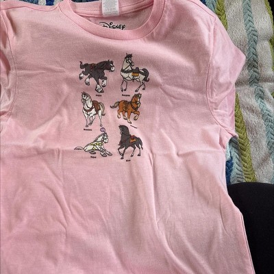 • Strut your stuff with this stylish new every day girls' t-shirt that is perfect for every occasion! Featuring Horses from your favorite Disney movies: Angus from Brave, Sampson from Sleeping Beauty, Maximus from Tangled, Philippe from Beauty and the Beast, Major from Cinderella, and Khan from Mulan.
