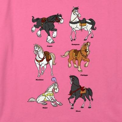 • Strut your stuff with this stylish new every day girls' cropped t-shirt that is perfect for every occasion! Featuring Horses from your favorite Disney movies: Angus from Brave, Sampson from Sleeping Beauty, Maximus from Tangled, Philippe from Beauty and the Beast, Major from Cinderella, and Khan from Mulan.