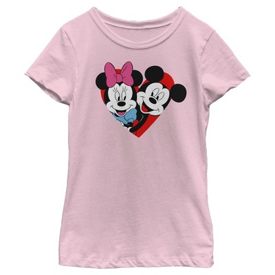 Girl's Disney Mickey and Minnie Heart Kiss T-Shirt - Light Pink - X Small