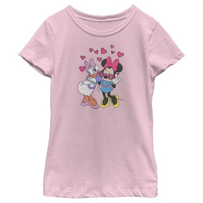Girl's Disney Minnie Mouse and Daisy Duck Hearts T-Shirt - Light Pink - X Large