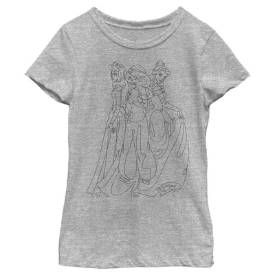 Girl's Disney Princess Line Art T-Shirt - Athletic Heather - X Large