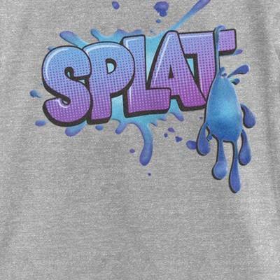• Strut your stuff with this stylish new everyday Girls' T-Shirt! Featuring the blue blob alien Splat hanging from his name printed across the front with a cool splash background!