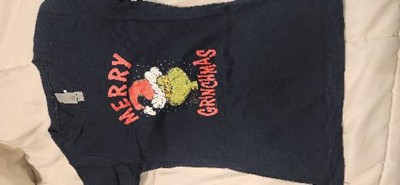 Welcome to the fantastical world of Dr. Seuss! This Christmas Day celebrate the beloved childhood classic books and movies from every generation with fun new officially licensed apparel for the entire family! This Girls' Dr. Seuss Merry Grinchmas Graphic T-Shirt features a portrait of Grinch showing off his angry glare framed by the phrase: "Merry Grinchmas" in red lettering across the front. Get ready for the rhyming and whimsy of Seussville with these classic tees today!