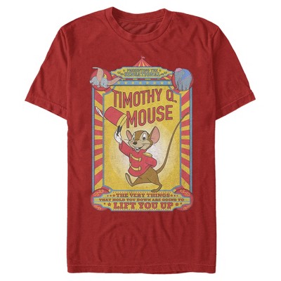Spread your ears and soar away with Dumbo and this officially licensed Disney Dumbo Timothy Q. Mouse Circus Poster Tee! This adorable tee features Dumbo's mentor Timothy Q. Mouse holding up his hat and smiling big, with the words "The Very Things That Hold You Down Are Going To Lift You Up" underneath him, printed in a retro circus-style poster. Get this tee today and don't let anyone tell you not to!