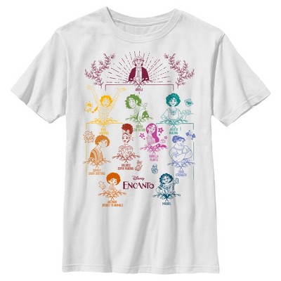 Join the Madrigal family for some magical and musical fun in the mountains of Colombia in Disney's new hit film Encanto! This officially licensed Girls' Madrigal Family Tree Tee features a colorful rainbow graphic of the Madrigal family members and their relationship to each other. Grab this new tee today and show your love for your new favorite Disney movie!
