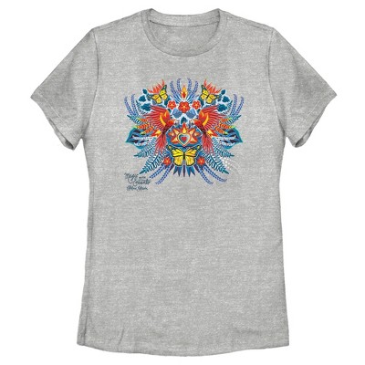 • An elaborate butterfly bird pattern is featured across this unique Encanto tee.