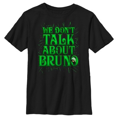 Join the Madrigal family for some magical and musical fun in the mountains of Colombia in Disney's new hit film Encanto! This officially licensed Girls' We Don't Talk About Bruno Tropical Leaves Tee features the phrase "We Don't Talk About Bruno" alongside tropical ferns and plant life. Grab this new tee today and show your love for your new favorite Disney movie!