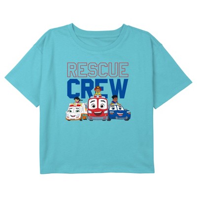 • Strut your stuff with this stylish new girls' cropped t-shirt that is perfect for every occasion! Featuring the text: "Ready To Rescue," and four panels with firetruck Flash, Bo, Violet, and ambulance Axl across the front.