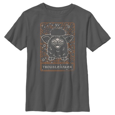 It's time to polish your Furbish skills! Find your favorite furry friends on this fang-tastic Girls' Furby Halloween Sketch Graphic T-Shirt! This fa-boo-lous tee features a large graphic of an orange Furby looking grumpy, surrounded by gray bats, white stars, and matching orange jack-o'-lanterns, along with "Furby" written in white lettering below. The classic must-have toy can now be taken with you everywhere on our very own Furby graphic apparel!