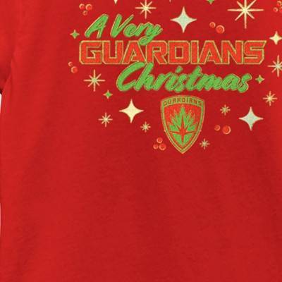 Join all the characters you know and love for some more festive fun with officially licensed apparel from the upcoming all-new original special, The Guardians of the Galaxy Holiday Special on Disney Plus! Get in on the holiday shenanigans with this new Girls' The Guardians of the Galaxy Holiday Special A Very Guardians Christmas Graphic T-Shirt featuring bright stars and sparkles, and the Guardians of the Galaxy shield logo below. It is never too early to get ready for the holidays with all your favorite Marvel characters!