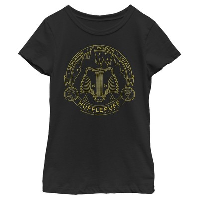 Girl's Harry Potter Classic Hufflepuff House Crest Graphic Graphic Cropped T-Shirt - Black - X Small