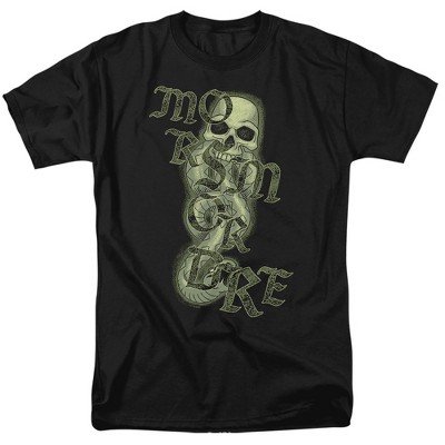 Unlock magical secrets hiding in the closet under the stairs with this officially licensed Harry Potter and the Deathly Hallows: Part 2 Death Eaters MorsmordreGirls' Graphic T-Shirt featuring the iconic Dark Mark, along with the spell "Morsmordre," and small portraits of Lord Voldemort, Bellatrix Lestrange, Death Eater, and Peter Pettigrew printed across the front. Head to Hogwarts with your favorite witches and wizards, learn spells, study wizardry, and uncover the mysteries surrounding the magical school for wizards! And, just remember, the spell is Wing-gar-dium Levi-o-sa and NOT Wingardium Leviosa!