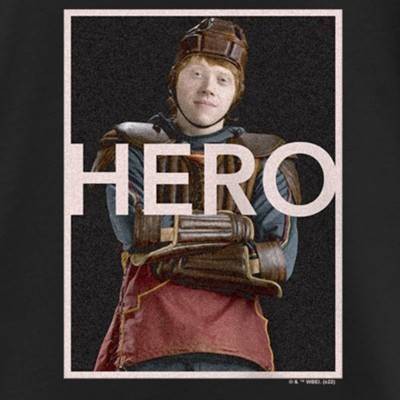 • Strut your stuff with this stylish girls' t-shirt featuring a fun portrait of Ron Weasley with the word "Hero" printed across the front!